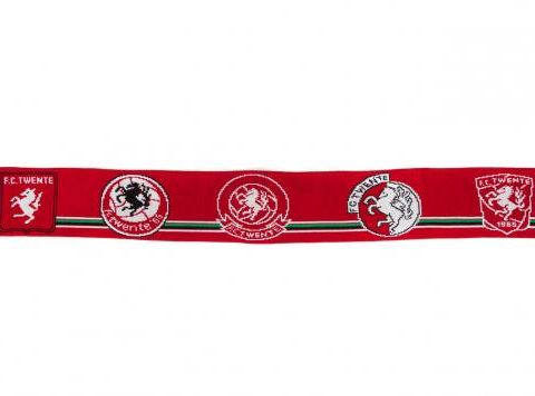 Bijzondere rode sjaal met verzameling van alle vorige logo's en het nieuwe logo van FC Twente. Jacquard geweven van waterafstotend...