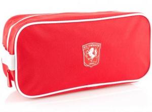 Sportieve toilettas in FC Twente rood en applicatie van het clublogo. Origineel detail is de witte 'ceintuur'. Praktisch dankzij twee...