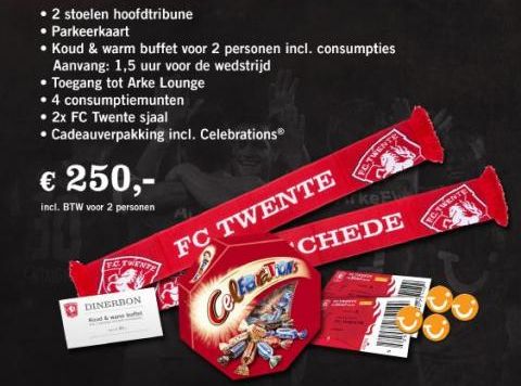 Nu met een sjaal, FC Twente sleutelhanger en zakje chocolademunten.