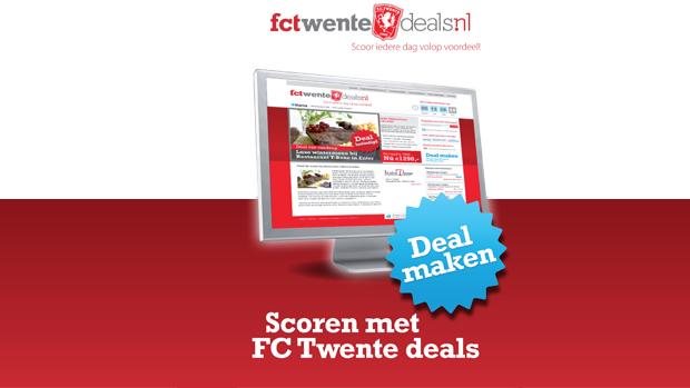 Fctwentedeals.nl is een platform waar de vele Twentse bedrijven, de sponsoren en de voortdurend groeiende supportersschare van FC Twente elkaar vinden. Op www.fctwentedeals.nl worden exclusieve producten en diensten uit de regio met een flinke korting aangeboden. Dagelijks gaat het om één interessante en aantrekkelijke nieuwe deal.